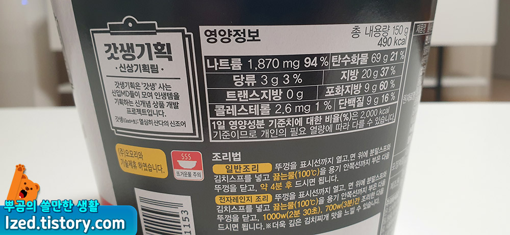 오모리 김치찌개 라면도 마찬가지로