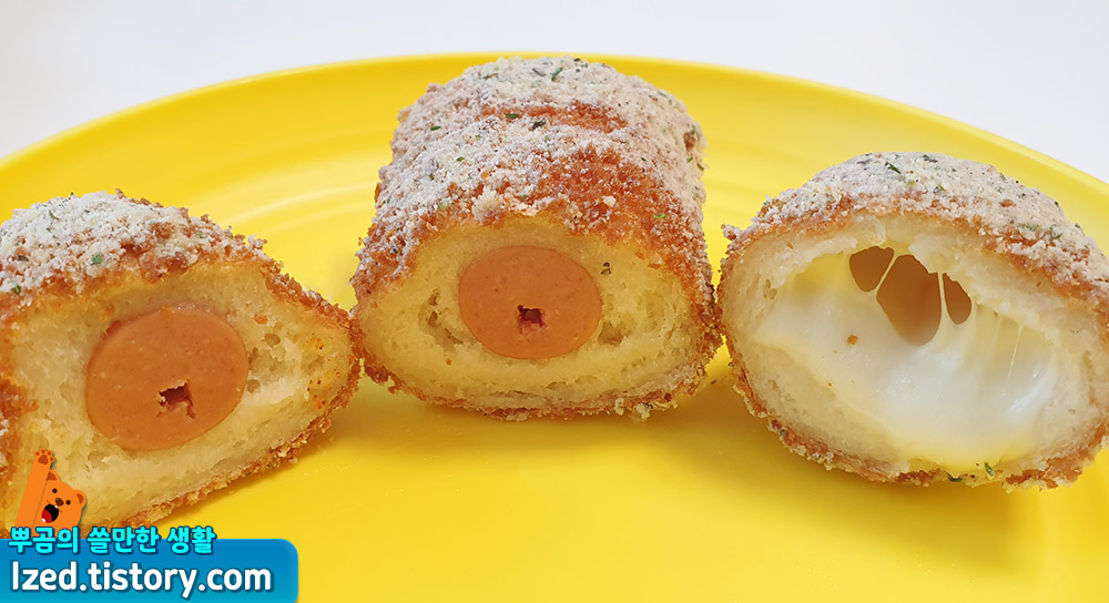 속에는 소시지와 모짜렐라 치즈가