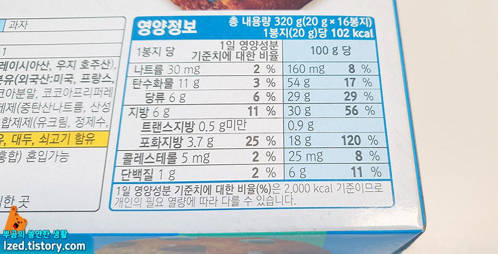 뒷면의 영양정보를 확인한 결과