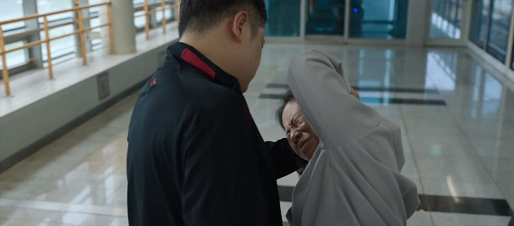 청소부 할머니를 구해주며,