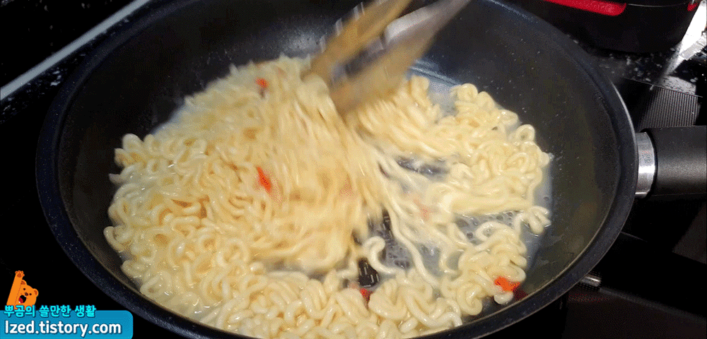 자, 이제 면이 익으면 불을 끄고,