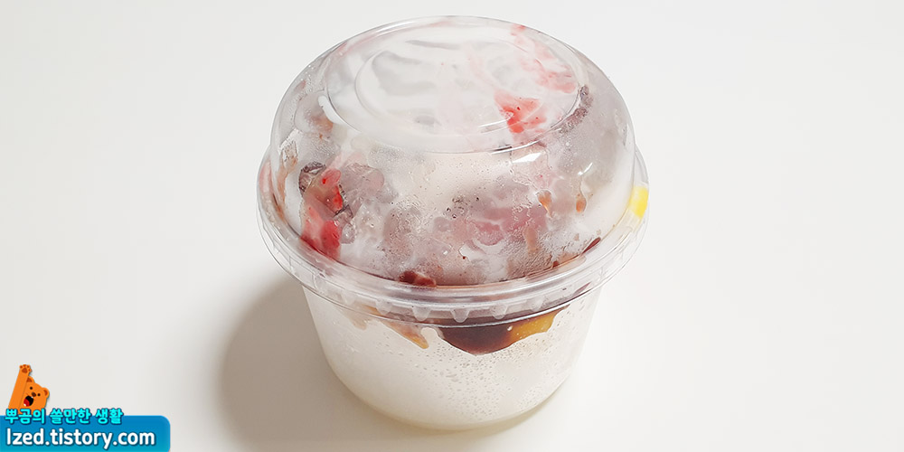이번 롯리빙수엔 시럽의 양이 줄었습니다.