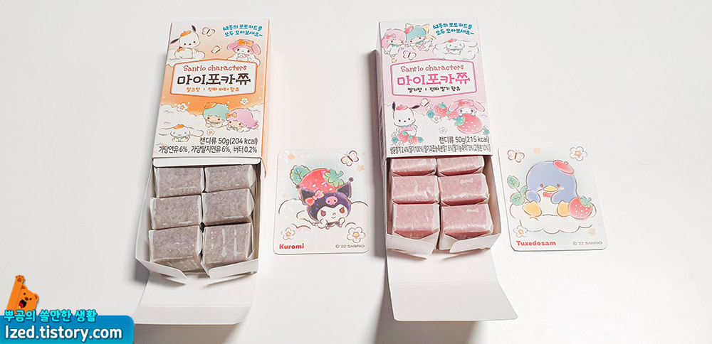 산리오 캐릭터즈의 포토카드가 들어있는 캬라멜