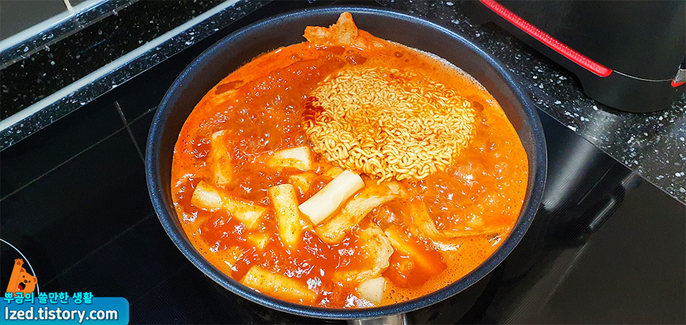 떡볶이 소스, 육수, 떡과 어묵, 라면으로