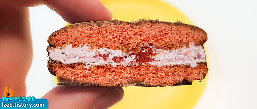 핑크색 크림, 중간에 딸기잼까지..