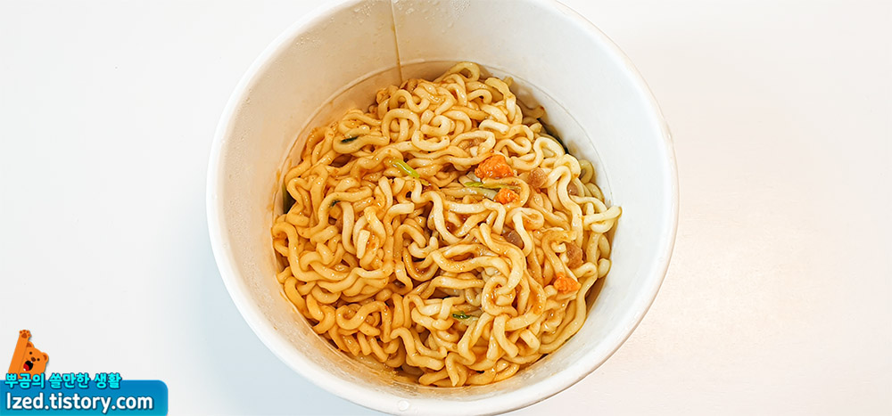 끓는 물을 넣은 후 4분 후에 물을 버리고