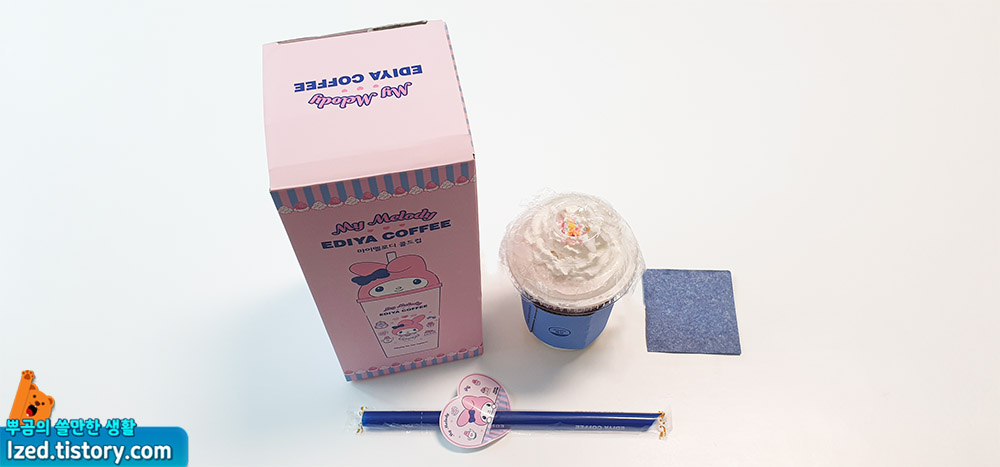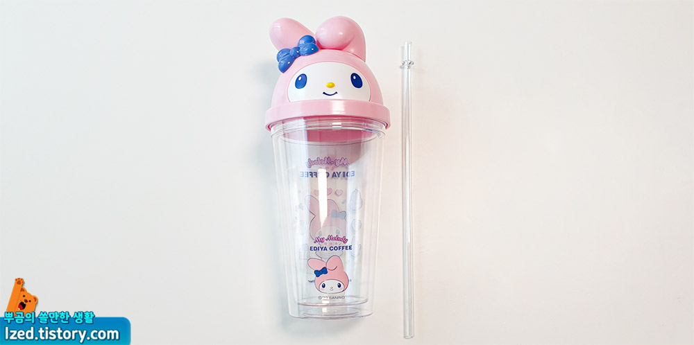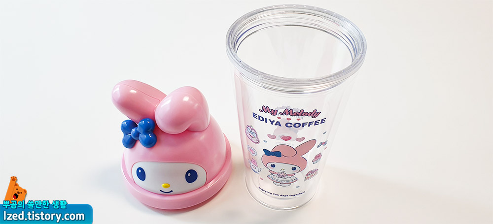 콜드컵 본체와 마이멜로디 모양의 뚜껑이
