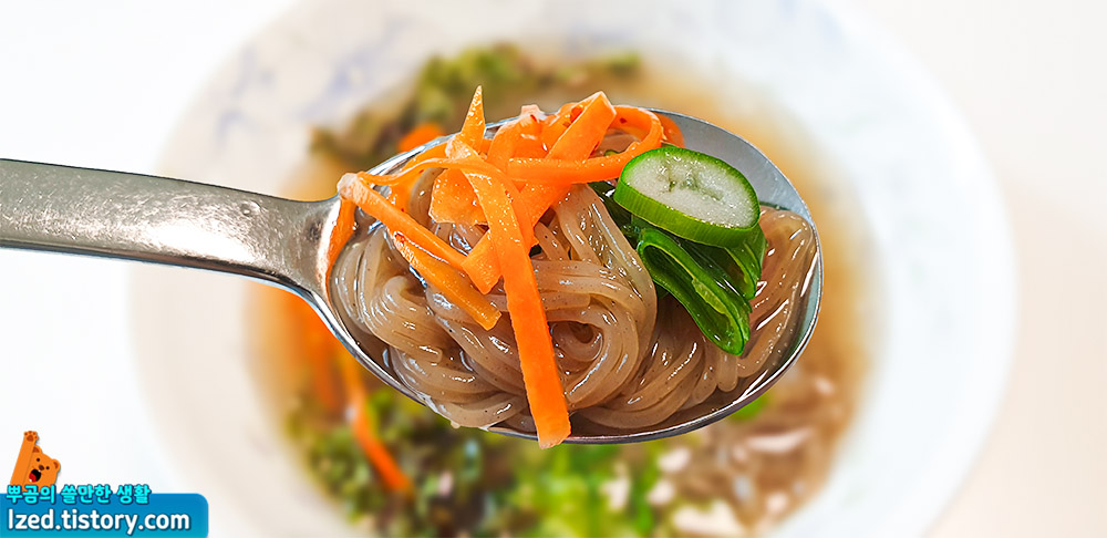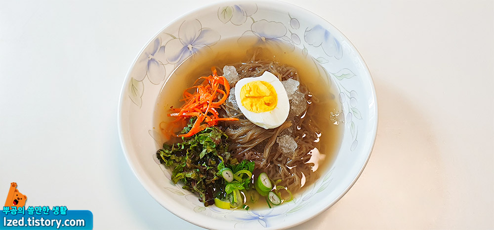 시원한 냉면육수를 더하면